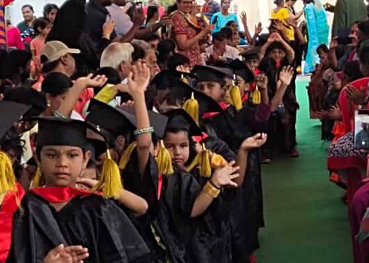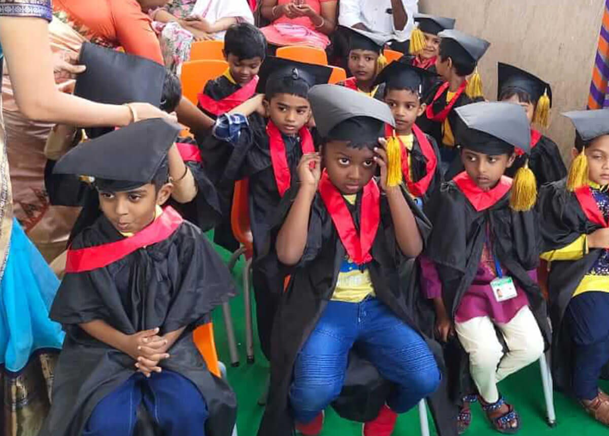 Graduation at san is a wonderful way to end a memorable kindergarten school year! It is a time to honour the children who have spent together in the kindergarten years-Nursery, Jr.Kg, Sr.Kg. Amidst Academic ,Co-curricular Activities and their hectic schedules in Kindergarten, the children and teachers of Sr.Kg have their eyes focused on one big event – “THE GRADUATION DAY” in the academic calendar. The beams of laughter, the tears of sorrow, the hard work, appreciation are part of the great day. The cultural extravaganza put up by each and every child is most important event of the day for the children, teachers and support staff. It is an awe inspiring day when children walk the ramp adorned in traditional convocation gowns and caps designed by the school. The smiling faces are welcomed by rapturous applause from the parents as they receive the graduation certificates on the stage from the chief guest. Children also receive special appreciation certificate for their special abilities and qualities. After 3 years in kindergarten, the little sanities gradually grow into butterflies ready to flit away into the primary section.